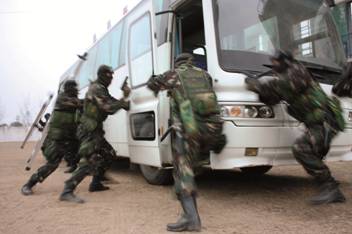 突入大巴是一项高难度训练课目,但是对于承担反恐任务的特种部队来说这项训练必不可少。