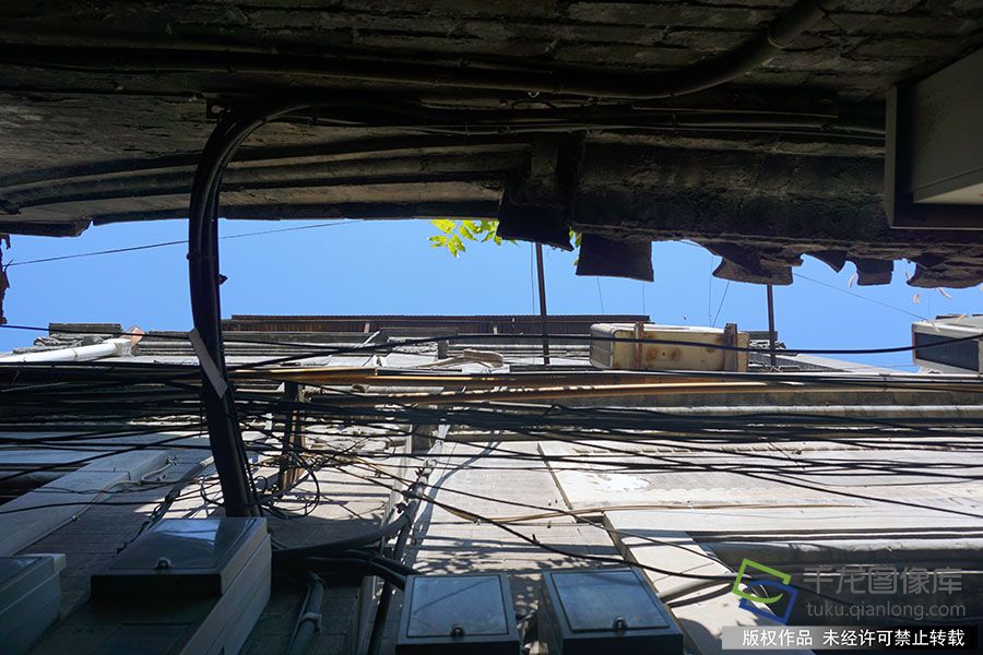 在胡同中抬头,只能看到“一线天”。 千龙网记者 张静摄