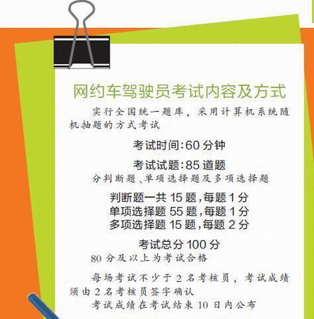 交通部公布网约车考试内容 80分及以上考试合格