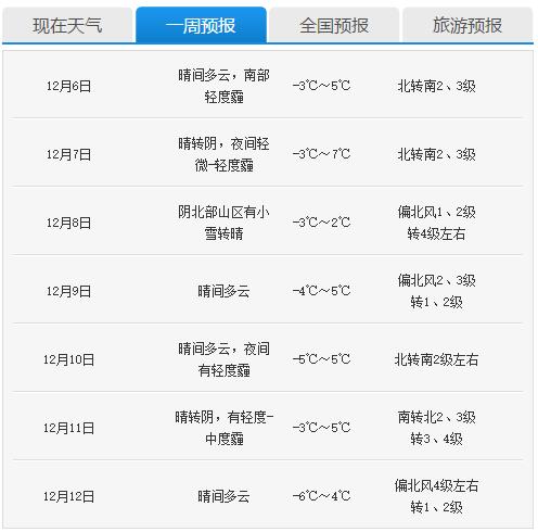 市专业气象台专家预报,预计本周冷空气活动比较频繁,雾霾天气无法长期驻扎京城,只是短时间内有轻度积累。具体来说,本周不会有明显的降雪天气,共有两次冷空气活动,分别在周一和周四。但从目前来看,冷空气的强度有限,影响时间也短,因此周二、周三、周六、周日仍有出现霾的可能性。本周大部分时间气温会比历史同期略偏高,最高气温基本都要在5℃以上,最低气温是-2℃至-4℃。