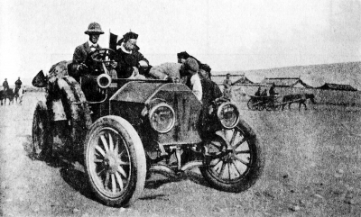 ◀库伦的一位官员在试乘博盖塞亲王驾驶的赛车。