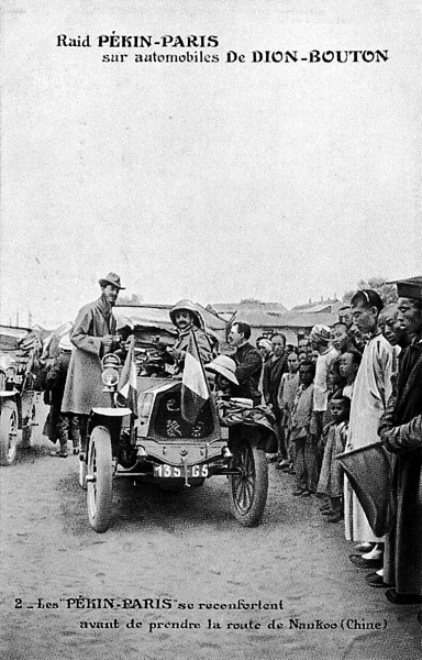 1907年6月10日一大早,五辆参赛车来到东交民巷的法国兵营集合,在京的外国人几乎都参加了出发仪式。看过《速度与激情》电影的朋友肯定会注意到,赛车比赛的发令员都是女性,1907年的这次拉力赛也是如此。法国使馆一等秘书的夫人高高举起发令旗后,赛车手们都出发了。今天赛车比赛中出发时如离弦之箭的场景是看不到的,因为这些车的马力实在太小了。开始的路程都很顺利,赛车从东交民巷东口上崇文门大街,往北经东单、东四,最后从德胜门出城。南口是他们遇到的第一段险路。奥古斯特驾驶三轮车,刚到南口就抛锚了,不得不雇了民夫将他的车拉着前行。一路上车手都被好奇的民众围观,毕竟那是汽车远未普及的时代。尽管1902年慈禧太后已经有了两广总督德寿呈进的美国产图利亚汽车,但藏在深宫,老百姓无缘得见。出了张家口不远就进入大草原,博盖塞亲王始终领先。他们一直沿着电报线走,在库伦(今乌兰巴托)受到极高的礼遇,一位高级官员还试乘了汽车。62天之后,历经艰险的5支车队先后抵达终点巴黎:意大利车队夺冠,荷兰队、迪昂一队和迪昂二队随后抵达。而由奥古斯特驾驶的三轮摩托车就没有那么幸运了,他中途陷入沙漠,赛车损坏,退出了比赛。