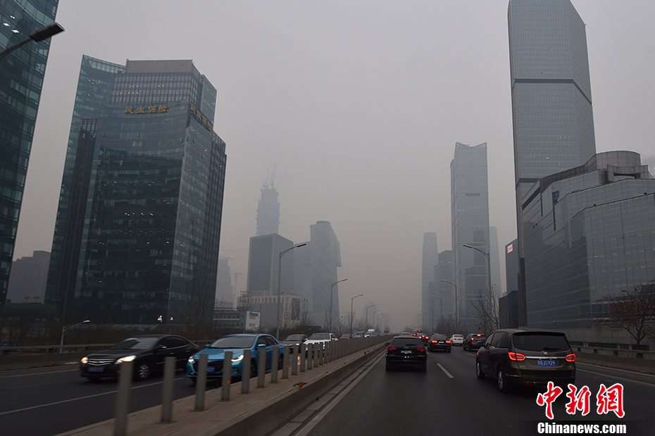 中央气象台12月12日清晨6时继续发布霾橙色预警,预计12日8时至13日8时,北京有中到重度霾,局地能见度小于1公里。图为北京东三环附近。 中新网记者 金硕 摄