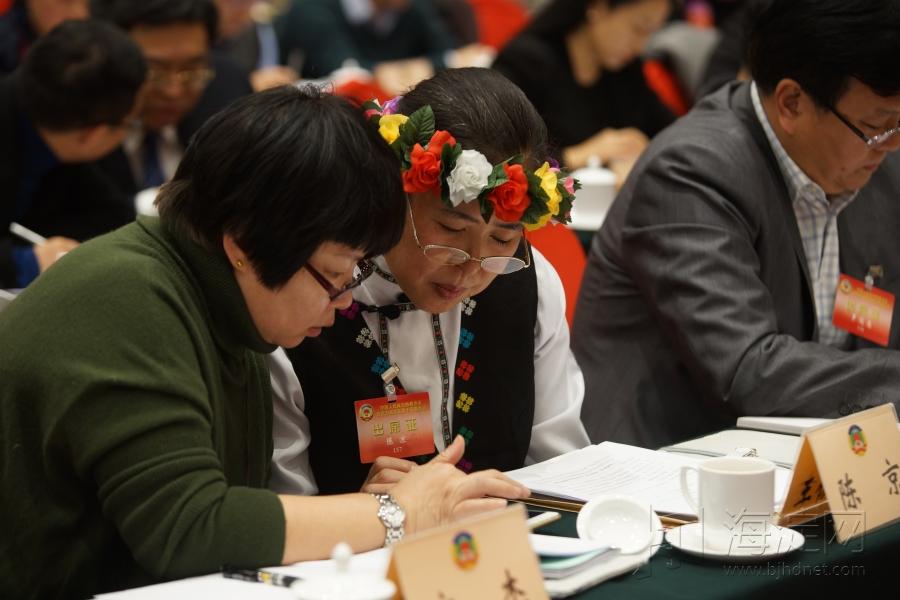 12月10日下午,海淀区政协十届一次会议隆重开幕。会场上有一道独特的风景线,多位来自少数民族的区政协委员,她们身着“花儿”一般的民族服饰参加此次大会,令人赏心悦目。据了解,在本届政协416名委员中,来自彝族、高山族、回族、蒙古族等少数民族委员共有32人,占总人数的7.7%。(通讯员 王芳/文 张洪军/摄)