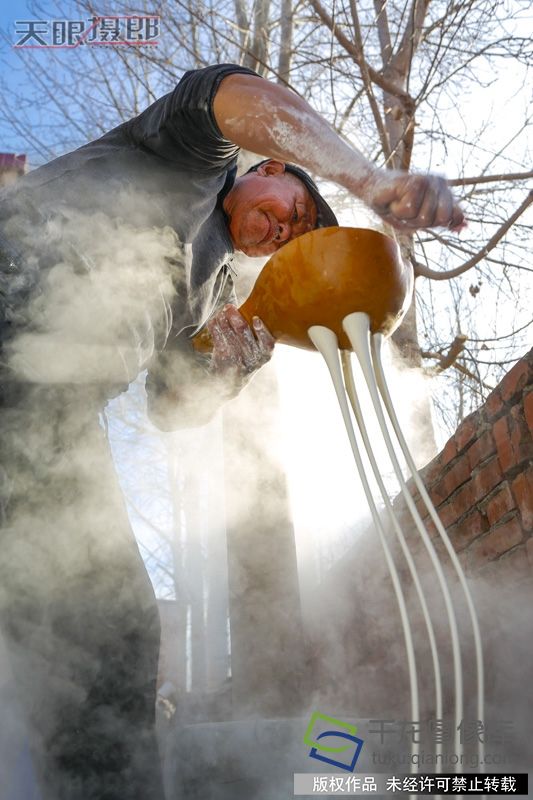 利用红薯淀粉手工制作粉条,在我国至少已经有1400多年的历史,在甘营村也有200余年的历史。随着科技的进步已经普及机器漏粉,大多数农家嫌麻烦,已经不用手工制粉了。张国爱说:“机器压出来的粉条吃着不是那个味道,我们家更喜欢用纯手工来制粉,口感好,吃着劲道。”千龙网友 天眼摄郎 摄