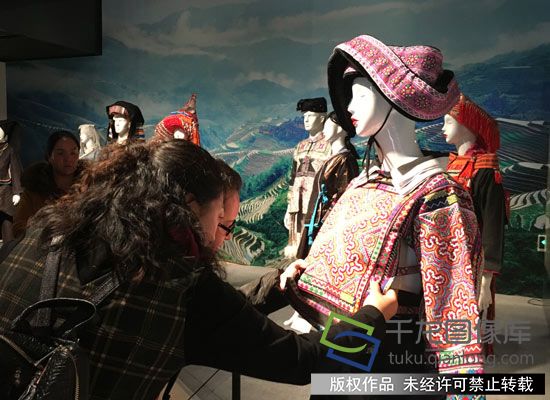 精美繁复的刺绣服装吸引不少女性观众驻足 摄影 千龙网记者王立立