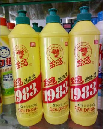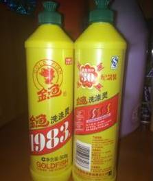 20多年前,金鱼洗涤灵有个特点:当时厂家为用户着想,大概还有个节约意识,就是它的瓶盖液体出料孔开的很小,如果你想多用点量,必须要用力挤压才行。