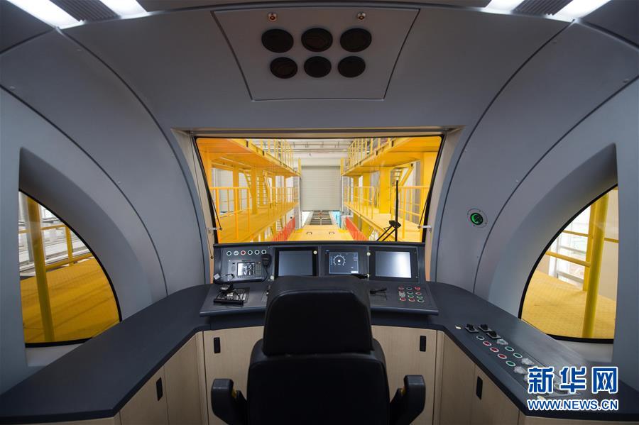 北京S1线首列磁浮列车车厢内部车头部分(12月25日摄)。新华社记者 罗晓光 摄