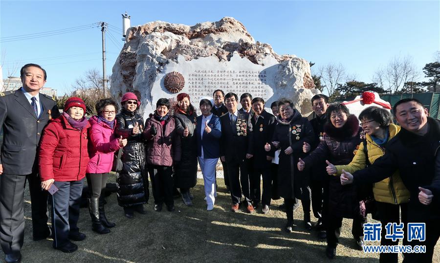 12月28日,参加“劳模墙”落成仪式的嘉宾们在“劳模墙”前合影。当日,北京“劳模墙”在明城墙遗址公园落成。“劳模墙”上镌刻了1949年至今北京市的1197名全国劳模的名字。 新华社记者李欣摄