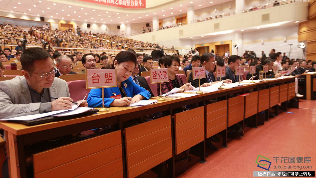 1月12日,2017年政协全会的开闭幕式首次摆放委员界别标识牌,图为现场与会委员按标识牌就坐。千龙网记者 陈健男摄