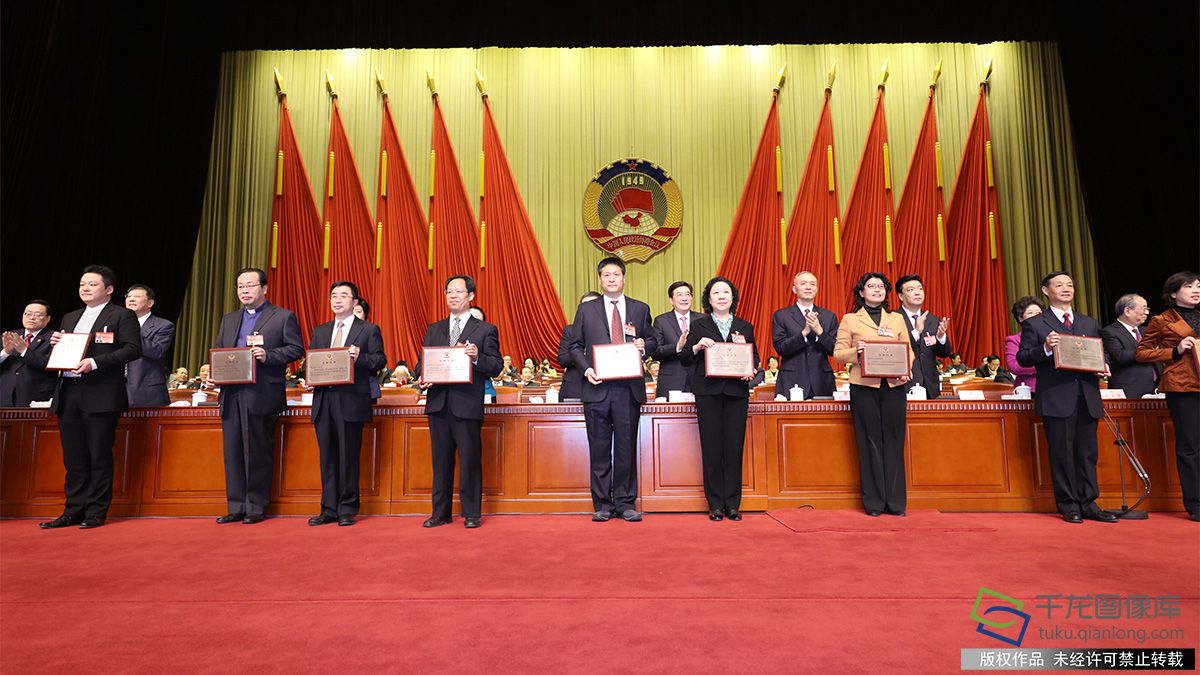 1月12日,政协北京市第十二届委员会第五次会议在北京会议中心开幕。图为获得2016年度优秀提案奖的集体和委员代表上台领奖。千龙网记者 宋鹏飞摄