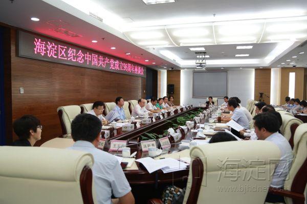 6月28日,海淀区委召开纪念中国共产党成立96周年座谈会,重温党的光辉历程、弘扬党的优良传统,深入学习贯彻习近平总书记系列重要讲话精神和治国理政新理念新思想新战略,深入学习贯彻习近平总书记两次视察北京重要讲话精神,动员全区各级党组织和广大党员要切实增强政治责任感和历史使命感,以高度的思想自觉和行动自觉,把市十二次党代会精神认认真真地学习好、宣传好、落实好,进一步将思想认识行动统一到市十二次党代会精神上来,将智慧和力量凝聚到市十二次党代会报告确定的目标任务上来,全力加快建设全国科技创新中心核心区,努力谱写建设国际一流和谐宜居之都的海淀新篇章。市委常委、区委书记崔述强出席会议并讲话,区委副书记、区长于军主持会议,区领导刘勇、周志军、张欣欣、王际祥、高念东、李长萍及其他区委党建工作领导小组成员,各街镇党(工)委书记,部分先进基层党组织、优秀共产党员、优秀党务工作者和基层党代表参加会议。