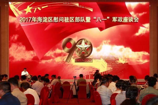 7月26日,2017年海淀区慰问驻区部队暨“八一”军政座谈会召开。全国双拥办、北京市双拥办、首都军(警)民共建指导小组等上级单位领导,军委、海军、空军、火箭军、战略支援部队、军事科学院、国防大学、武警部队等驻区部队首长,与海淀区四套班子领导欢聚一堂,共庆中国人民解放军建军90周年,畅叙军政军民鱼水之情,共商军地军民融合发展大计。
