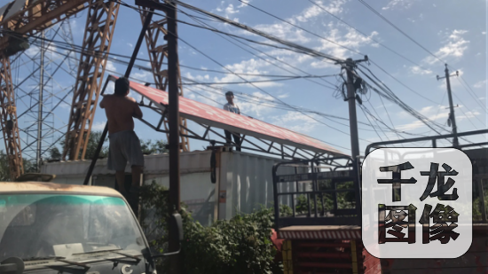 施工人员正在拆除一处违规广告牌。朝阳城管供图 千龙网发