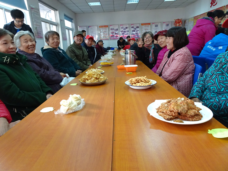 上午九点钟,刚一走进居委会活动室,一股饭菜的香气就钻入了记者的鼻腔。这次邻里节与往年不同的是,除了立冬要吃的饺子,居民还要端出自己的拿手菜。排叉、炸丸子,各式自制炒菜、大拌菜,码放在两排桌子上,美食前的桌子上贴着菜品的名称和制作者的姓名,工会主席邵淑文、居委会主任高巍及驻区单位嘉宾和居民们拿着筷子互相品尝着大家的美食,吃到满意处,便给该菜品贴上一个大大的赞!!