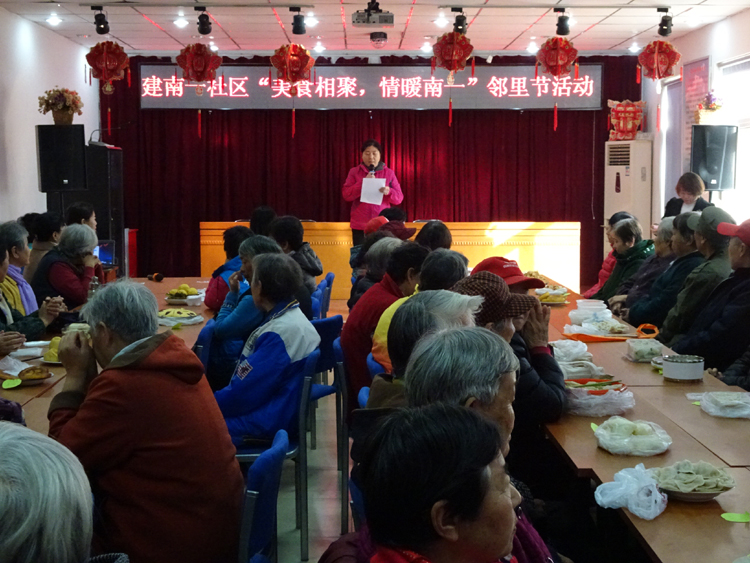千龙网讯 (通讯员 闫兆松) “大姐,您尝尝我包的饺子,五色的可好吃啦!”11月7日立冬当日,在胜利街道建南一社区居民活动站里,居民刘凤英老人夹起精致的饺子送到邻桌李淑芳面前,“嗯---你包的饺子啊,闻着就香哈哈哈---来来来,大妹子,快尝尝我炸的丸子,油而不腻哈哈哈----”。轻缓的音乐伴随着阵阵欢声笑语充满了整个活动站。当天,胜利街道建南一社区第十四届“美食相聚,情暖南一”邻里节活动正在这里温暖举办。胜利街道工会主席邵淑文、驻区单位嘉宾及辖区100多名居民参加了此次活动。