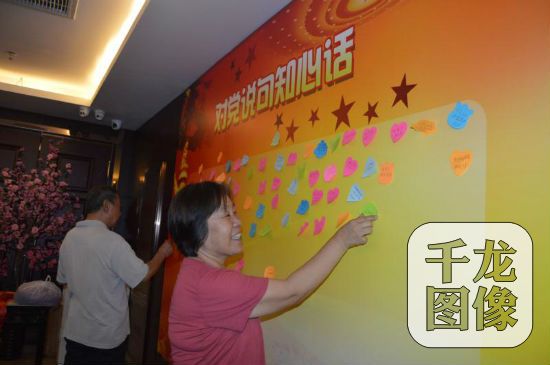 在“对党说句知心话”祝福展板上,党员们纷纷写下祝福语。通讯员 宋光明摄 千龙网发