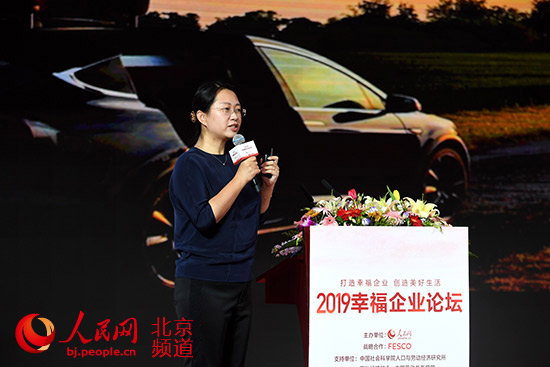 特斯拉大中华区人力资源负责人刘媛在优秀案例分享环节介绍了建设“幸福企业”的两条“幸福线“。