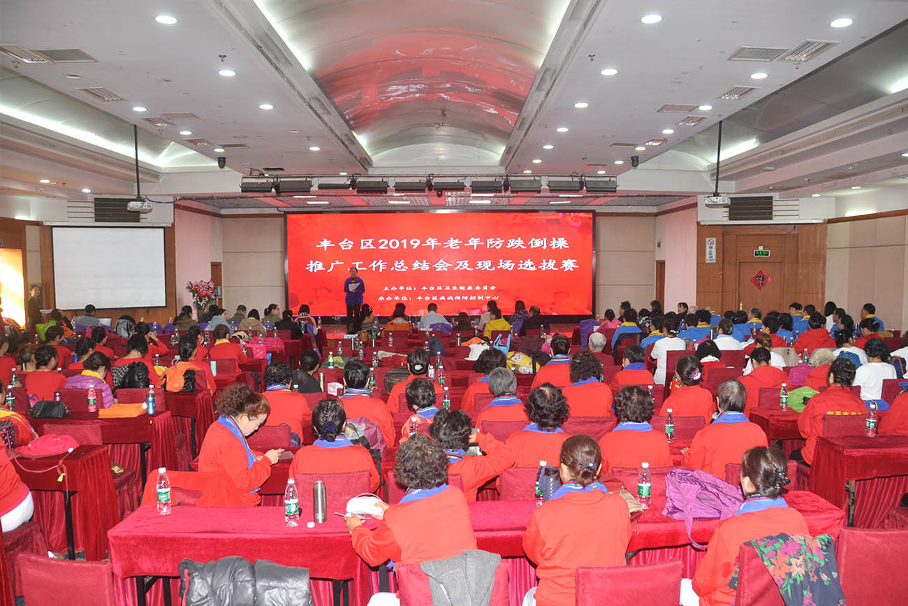 10月25日上午,由丰台区卫生健康委主办、区疾病预防控制中心承办的“丰台区2019年老年防跌倒毛巾操决赛” ,在圣地苑宾馆举行。