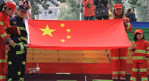 最后在歌唱《我和我的祖国》中结束了本次消防安全活动。