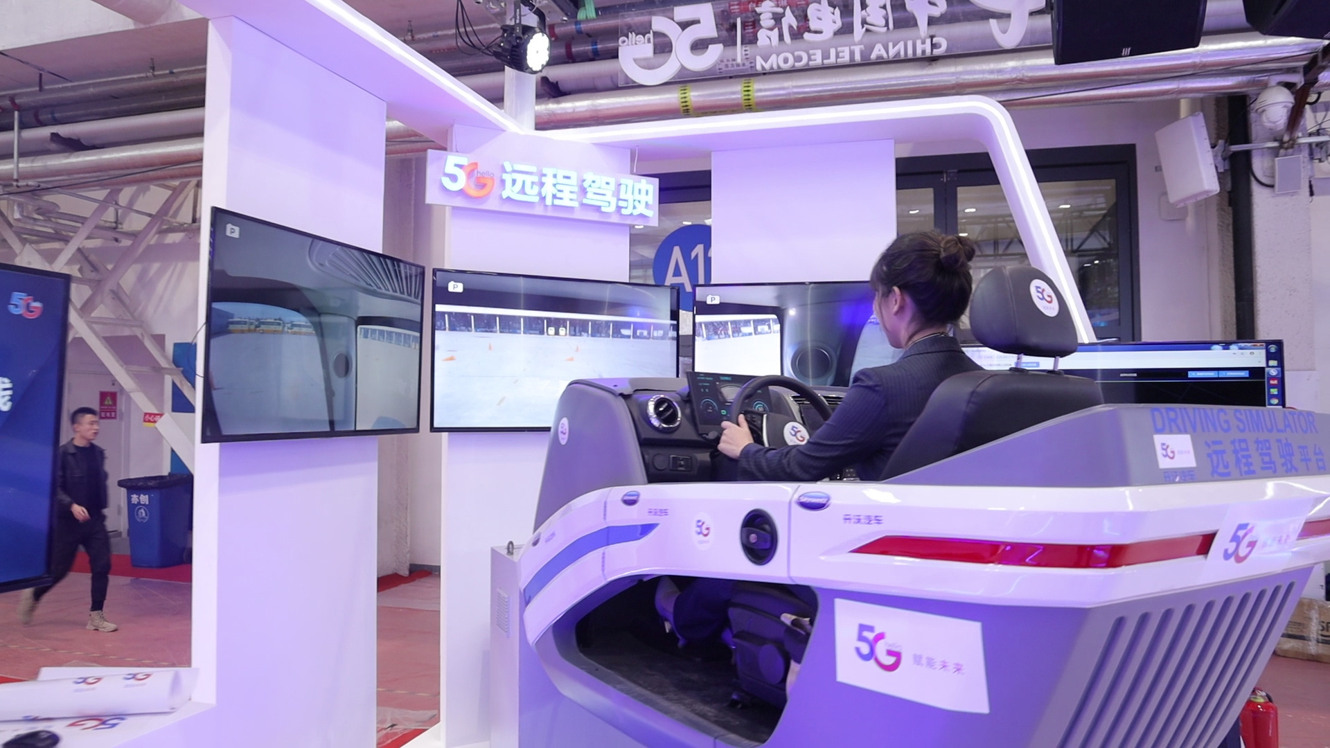 而在智能驾驶展区,5G远程驾驶模拟仓旁,排队开车的司机们跃跃欲试,通过模拟舱,可以操控远在南京溧水区的真实汽车,汽车通过低时延的5G网络,接收到信号,并根据指令行驶,跟实车操控感受一样。