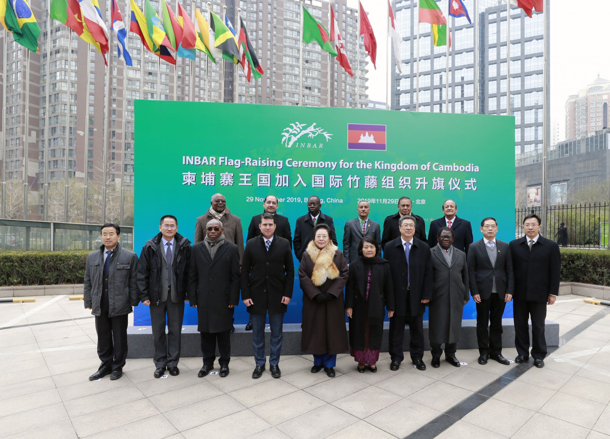 11月29日,柬埔寨王国加入国际竹藤组织升旗仪式在北京国际竹藤组织总部举行。国际竹藤组织董事会联合主席江泽慧,厄瓜多尔农牧业部部长哈维尔·拉索,中国国家林业和草原局副局长彭有冬,柬埔寨驻华大使凯·西索达等出席仪式并致辞。