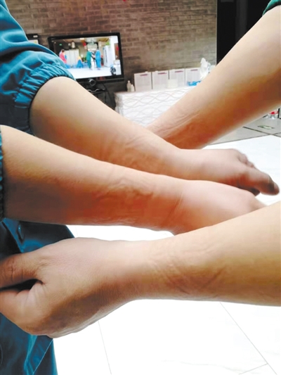 转运任务从上午九点多开始,一直到下午两点,分两次才完成。因为一直穿着全套防护装备,秦晓兵的脸上、手腕上的勒痕久久不能消失。