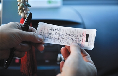 王建生在出租车票上记录接送的每一个乘客的路径、时间等信息,以备乘客确认感染进行追溯。