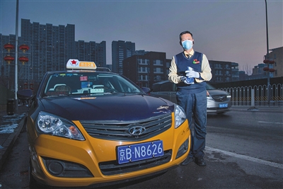 2月7日,垡头南杨庄路,“的哥”王建生戴上防护口罩、白手套,准备给车消毒。