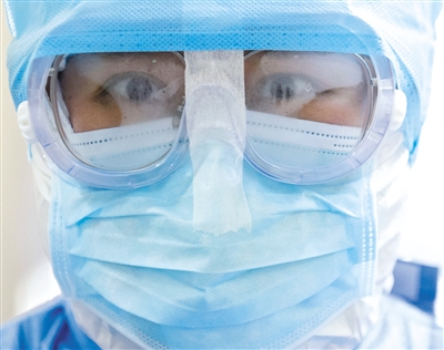 一天下来,勒紧的护具磨烂了皮肤,厚重的防护遮住了美丽面庞。但在病人面前他们却总是乐观向上,厚厚护目镜后透出的是坚定的眼神。