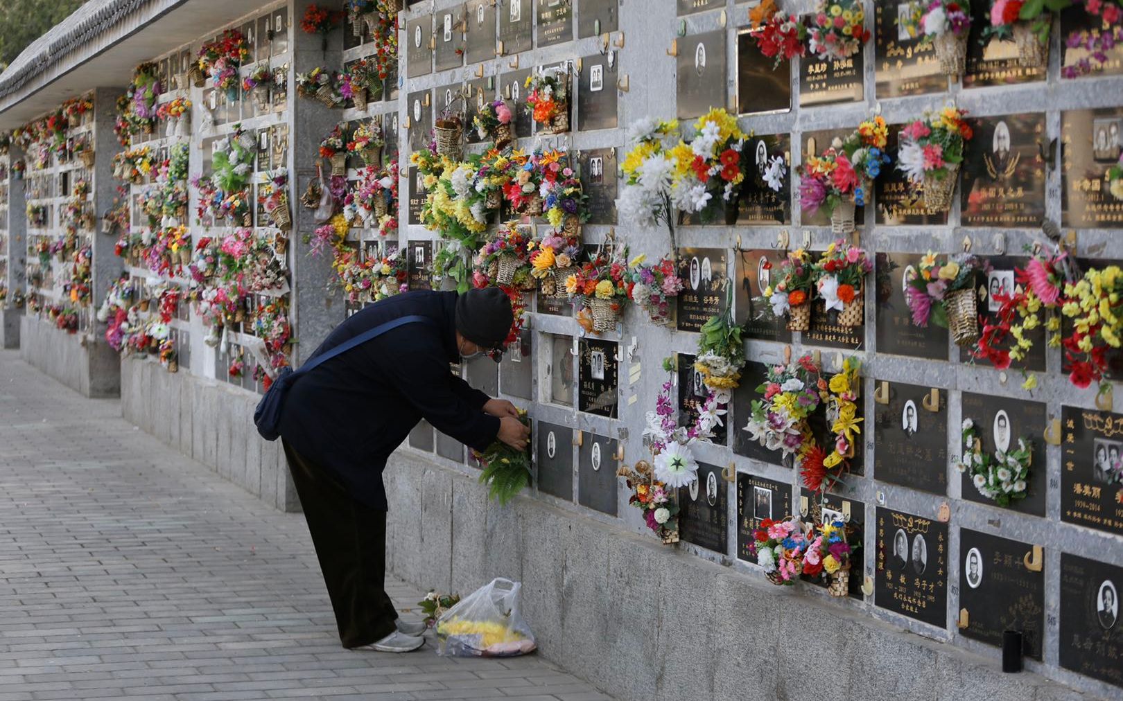 家属戴口罩在八宝山革命公墓祭扫。摄影/记者 郑新洽