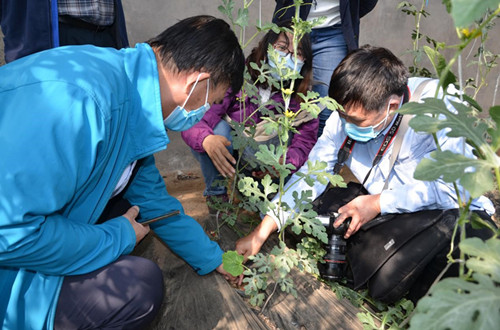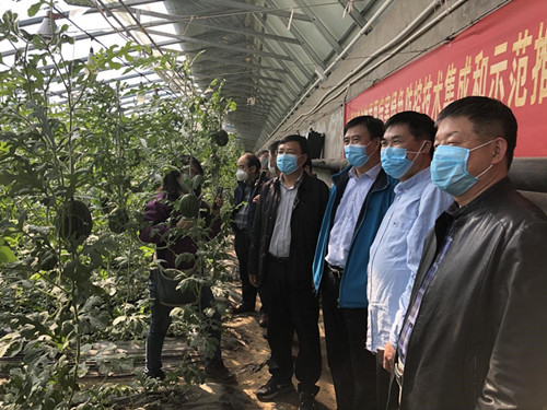 2020年4月上旬,北京市植物保护站组织开展了“植物微生态制剂在西瓜上的示范应用现场观摩会”。会上北京市植物保护站高级农艺师李金萍介绍了试验的设计情况及具体操作情况,园区技术负责人全面地介绍了使用产品后的防治效果:应用防线虫微生态制剂后瓜苗长势整齐,茎粗和叶绿素含量分别增加22%和35%,早春花期提前7天,瓜形周正;植物微生态制剂防控根结线虫病效果显著,根结线虫病病株率减少50%以上,挽回产量损失30%以上;减少化学农药使用量60%以上。专家组听取汇报及田间观摩后一致认为,防线虫微生态制剂可有效解决西瓜连作障碍,保持微生态平衡,达到防病、增产和改良品质等效果,是实现化肥减量提效、农药减量控害的资源节约型新产品。