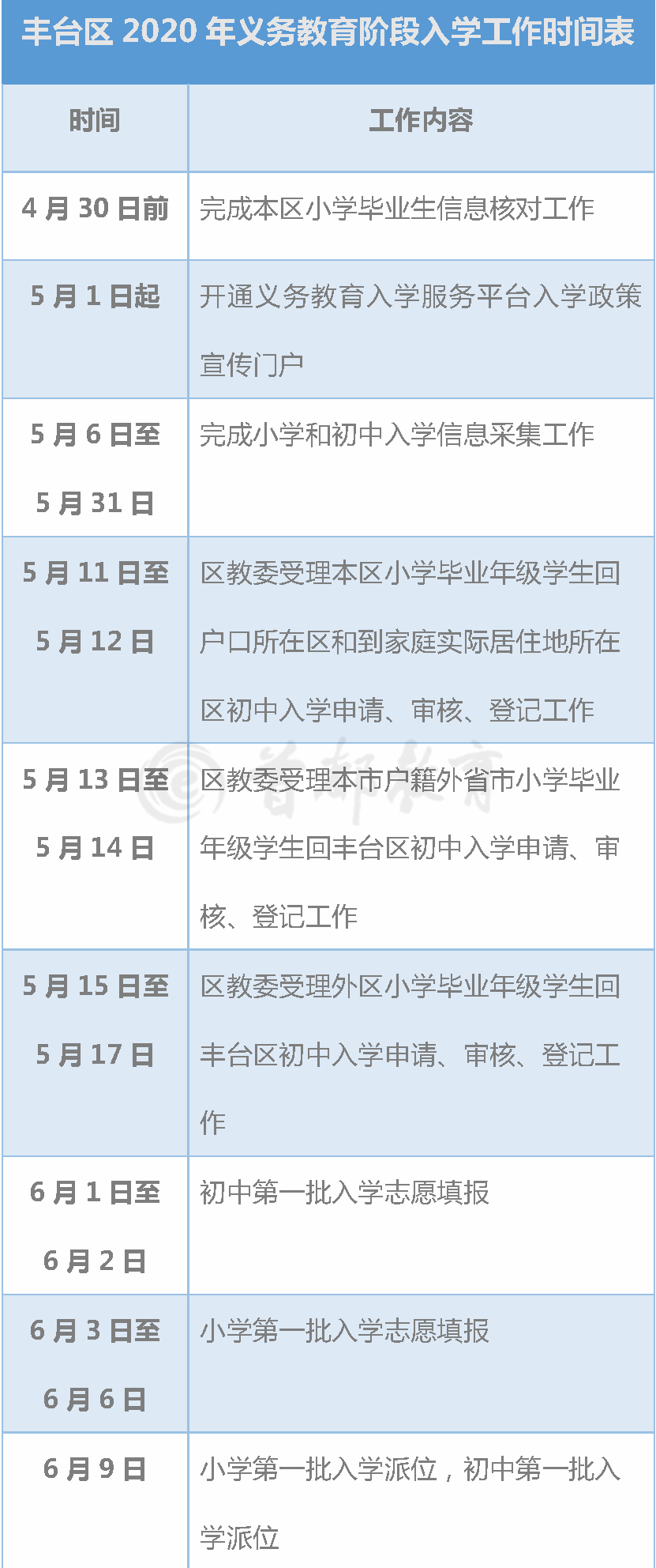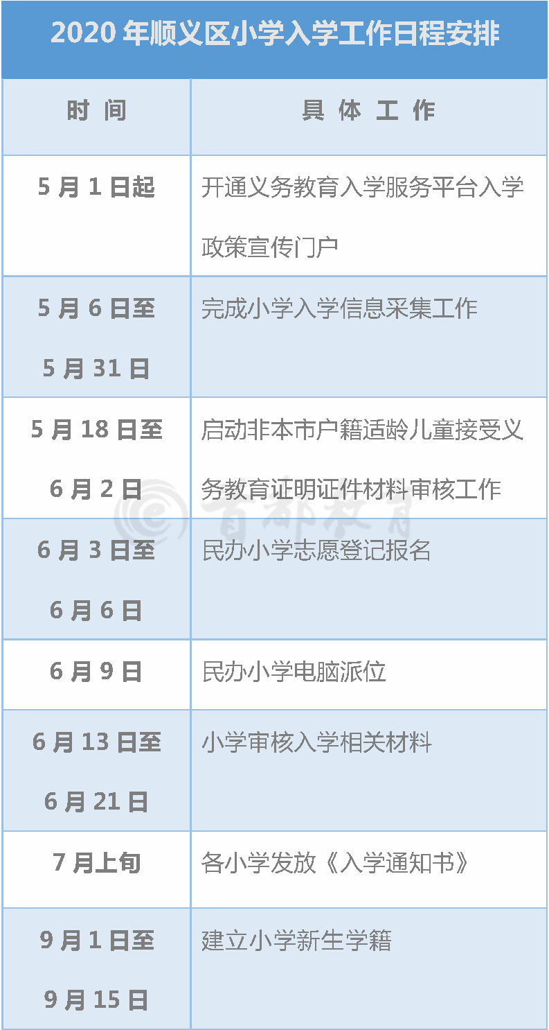 怀柔区 2020 年小学入学工作安排表