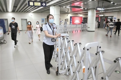 10号线芍药居站的班长定寅硕介绍,目前受疫情影响,乘坐公共交通的人数减少,围栏拆除的一个月时间里,早晚高峰时段暂时没有出现人员聚集站台的情况。但预计在疫情过去以后,客流高峰时还是需要一些限流措施,因此,他们做好了预案。