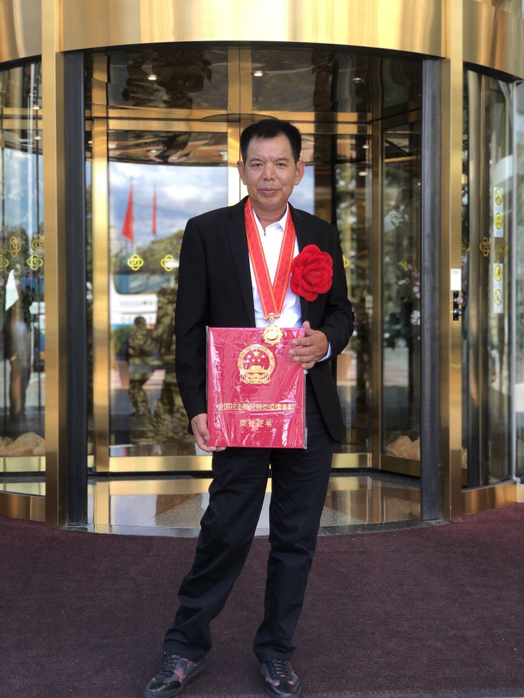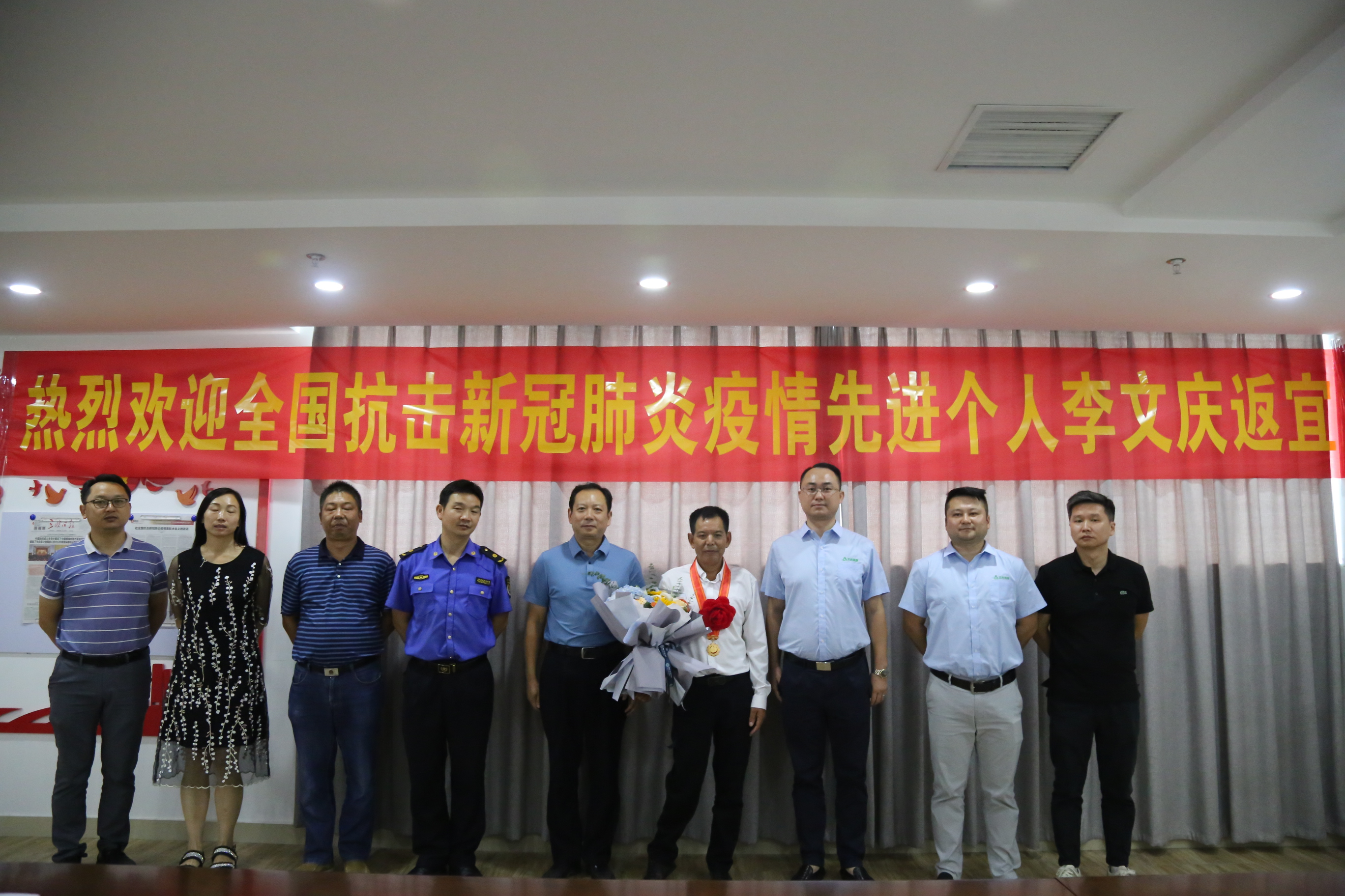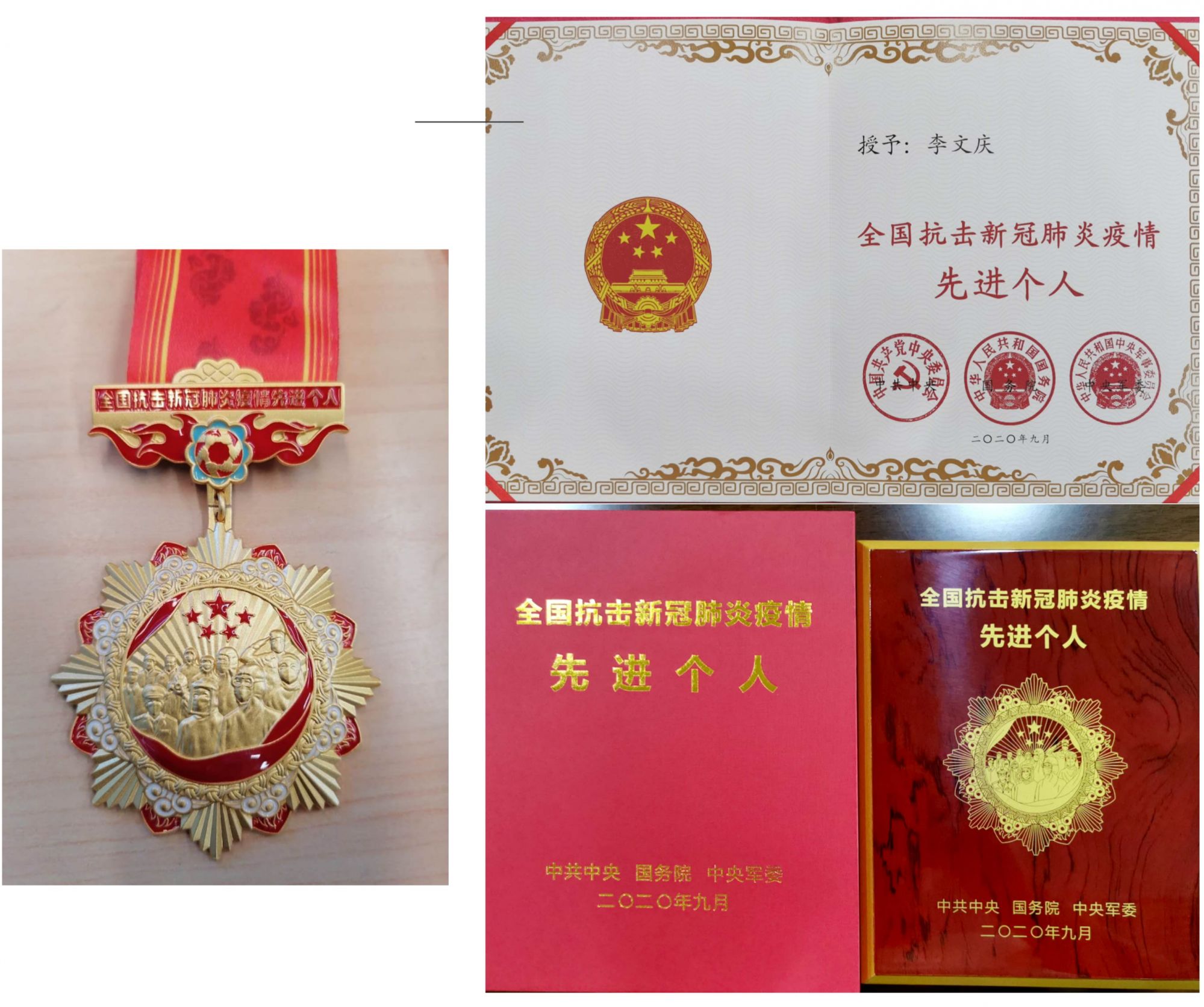 中间:全国抗击新冠肺炎疫情先进个人李文庆;