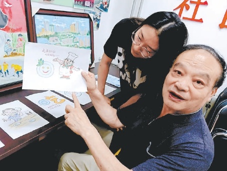 北京市石景山区鲁谷街道久筑社区70岁的蔡育老人日前用手绘“光盘”漫画的形式,向社区居民倡导珍惜粮食、杜绝舌尖上的浪费。本报记者 吴镝摄