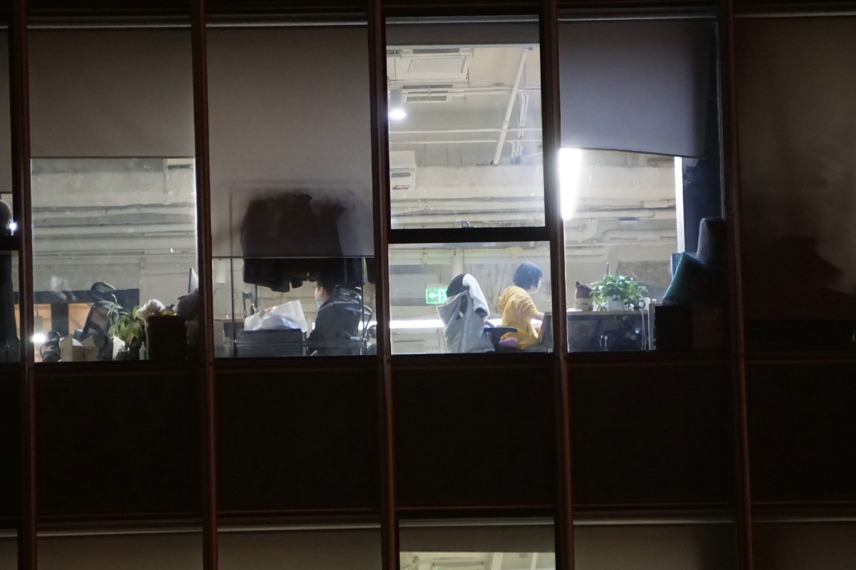 晚10点后才是这里的下班高峰期,加班族从大厦里鱼贯而出,寻找自己预订的车辆。“996”早就不足以定义这里的工作节奏,从窗户望去,办公室里仍在忙碌……