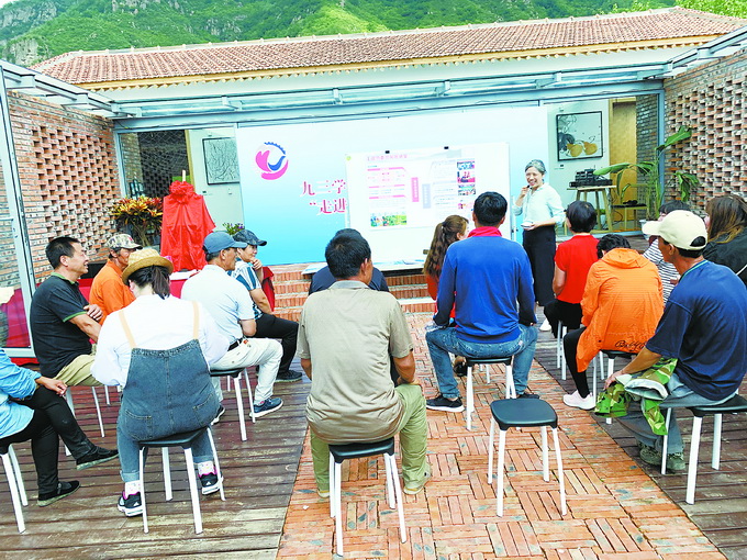 在民宿“百花山社”院内,吴宜夏给附近几个村的村民介绍精品民宿如何选址、合作、管理、服务,如何打造品牌、进行网络营销,让村民对打造精品民宿产生了兴趣,心中有了底气。