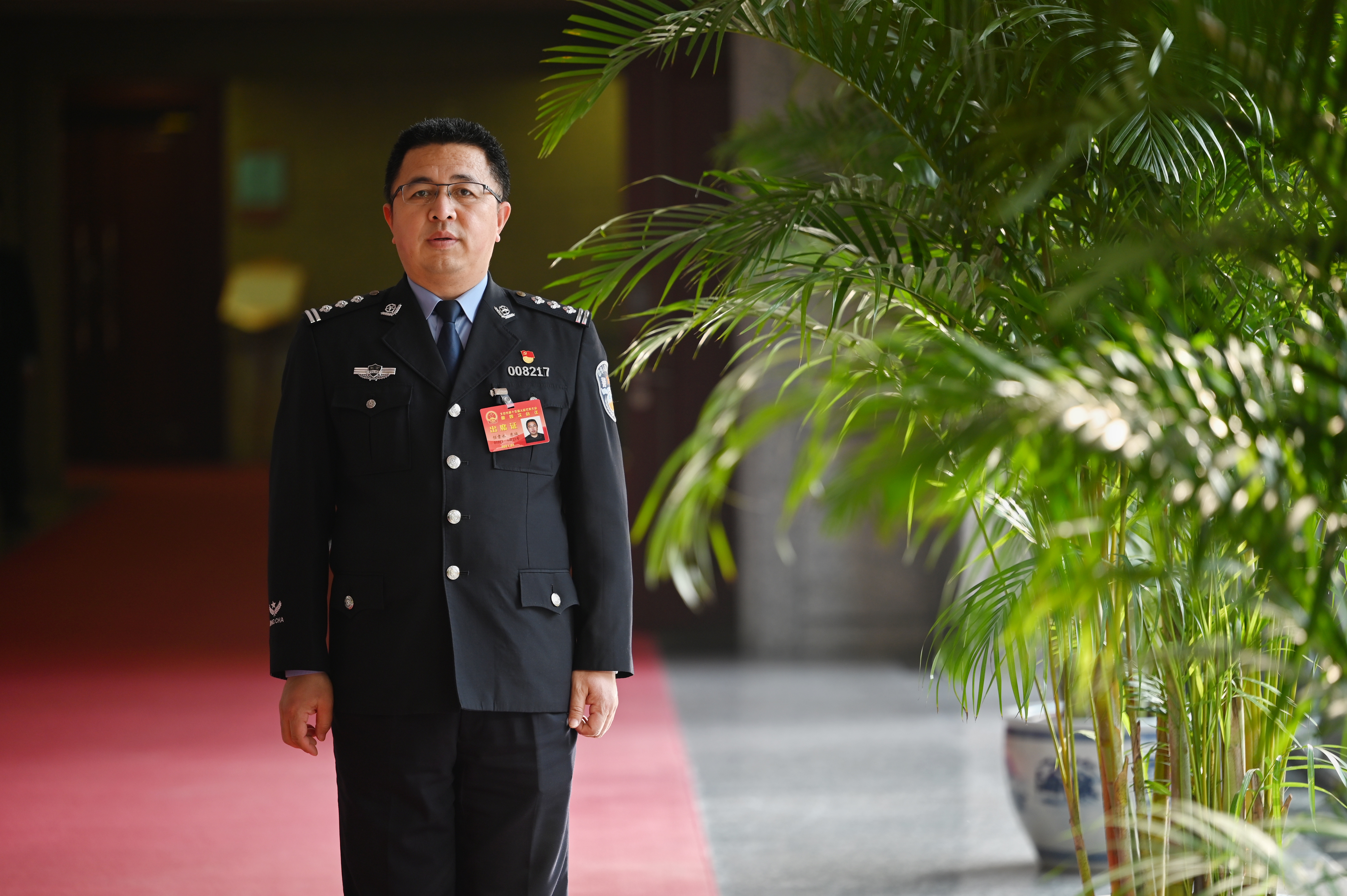 北京市人大代表、北京市交管局中心区支队副支队长任素永。新京报记者 陶冉 摄