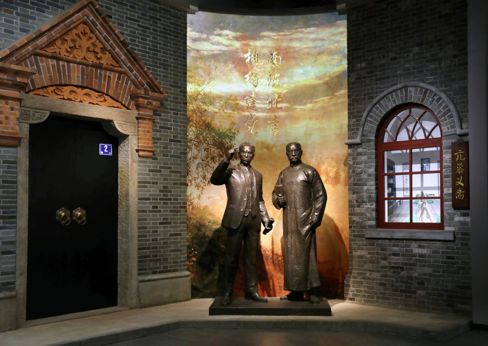 6月1日拍摄的中共一大纪念馆内的“南陈北李,相约建党”主题雕塑。新华社记者 刘颖 摄