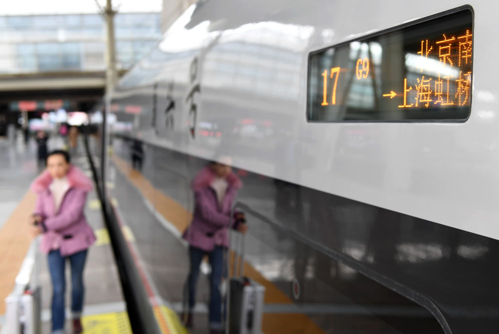 2019年1月5日,一列复兴号动车组列车停靠在北京南站。新华社记者 张晨霖 摄