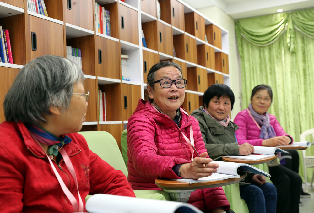 在上海市静安区江宁路街道健康驿站,脑健康自我管理小组的居民通过“讲故事”项目进行语言能力训练(2020年11月24日摄)。新华社记者 刘颖 摄