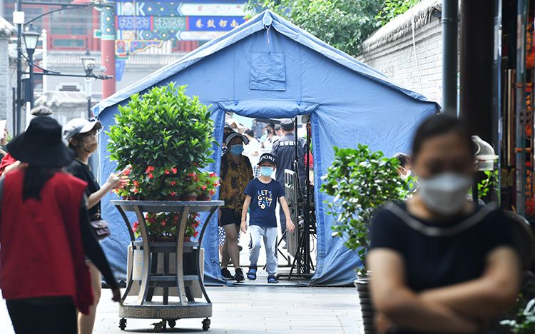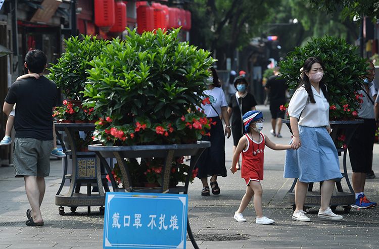 游客经过红外测温系统进入南锣鼓巷景区。游客需要提前预约,出示健康码和预约码之后方可进入。游客可以通过微信搜索“魅力南锣”公众号,点击关注并进入——点击下方菜单栏“小南帮”——进入“预约参观”进行实名制预约参观。