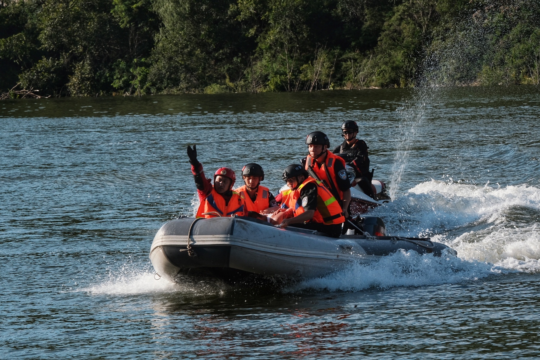 2021年8月28日,北京昌平公安分局开展水、陆、空“三位一体”应急处突综合演练。特警、巡警、反恐、派出所及消防、卫健委、水务局、气象局、镇街等100余名应急处突专业力量,出动各类车辆10余辆、摩托艇2艘、救生艇2艘、直升机1架联合参加了演练活动。据了解,本次演练是为了深入践行习总书记警察训词精神,贯彻落实公安部、北京市公安局党委部署要求,持续推动昌平公安工作高质量发展“四个篇章”之过硬队伍篇,全面锤炼各部门融合、协同、保障作战能力。
