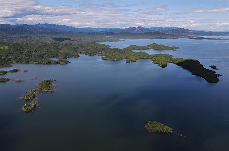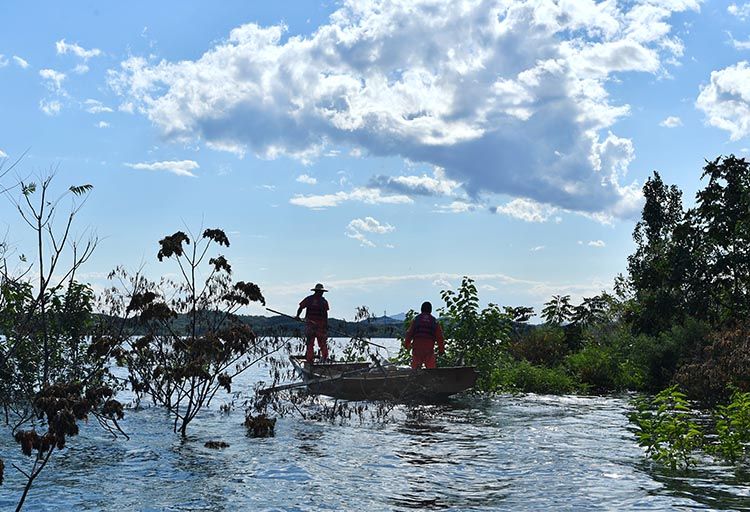 负责在水库开船巡查的工作人员告诉记者,现在走船只的这些地方,前一阵子都是路,“如今水位上涨,旱路改水路啦。”不仅如此,曾经水库水位低,裸露着不少小岛,随着蓄水量的上涨,这些小岛也不见了踪影,水库真正成了一个“水世界”。