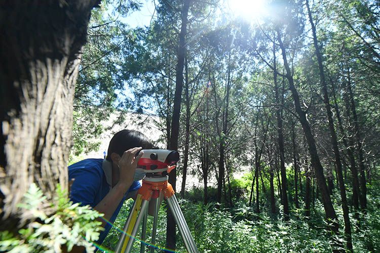 本次监测中,王晓荐的位置在大坝上的一个基准点位,她拿着高度标尺一直站在那里,等待位于固定点位的赵庆林完成引测后,她才稍微挪动下了位置。记者看了下时间,从站在点位开始到完成一个点位的引测,她至少顶着烈日站了15分钟。