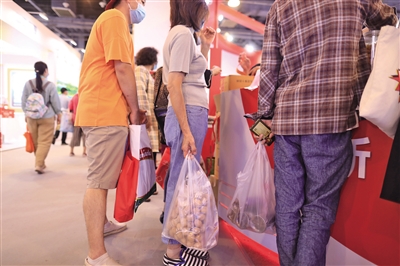 9月7日,服贸会国家会议中心展区,观众在购买新疆特色食品。新京报记者 浦峰 摄