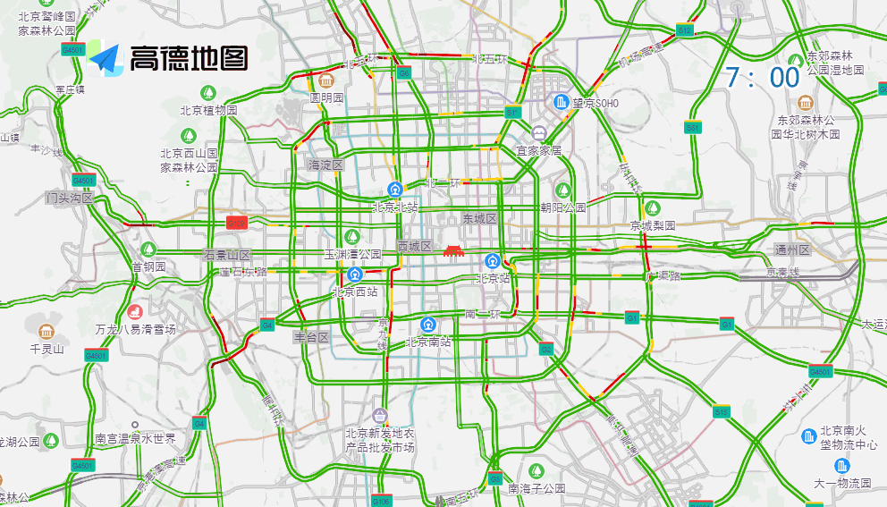 天气转晴,短途出游情况增多,城区香山-植物园、天安门广场、故宫、八大处、颐和园、动物园、天坛等公园热度较高,八达岭-居庸关长城、古北水镇、大兴野生动物园、房山十渡、温榆河公园等景区以及部分郊野公园将吸引游客自驾前往。