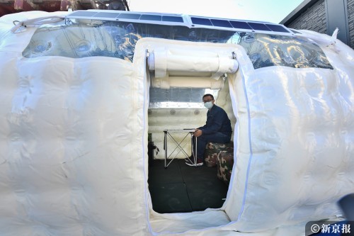10月26日,充气式保障舱亮相。 新京报记者 李木易 摄