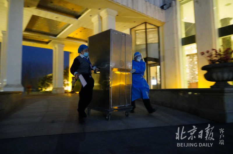 隔离观察点专门购置宴会保温车为留观学生和家长、老师送餐。每餐分装完毕后,装入保温车,在保持80摄氏度的情况下,送到隔离区,再由隔离区工作人员分送到每个房间门口。